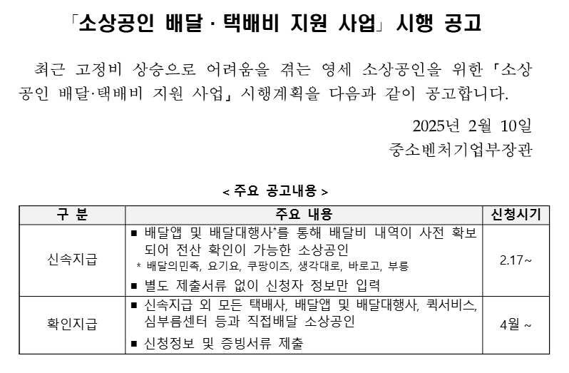 📢 특히, 배달·택배비 인상으로 어려움을 겪는 온라인 판매업자, 소규모 매장 운영자라면 필수 신청해야 합니다!